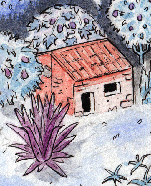 Pen & watercolors on paper. 20x20 cm.